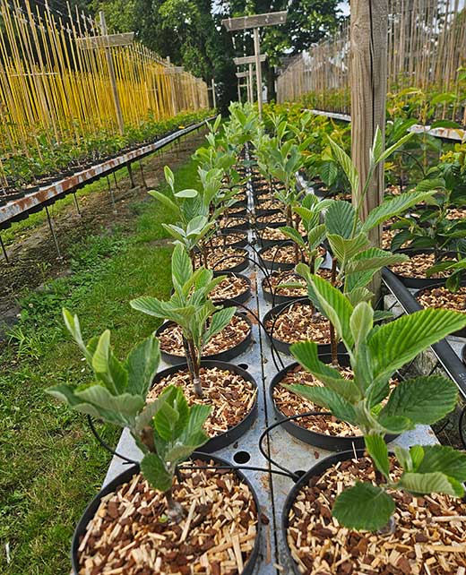 In onze kwekerij in Lienden kweken we jaarlijks zo’n 10.000 bomen en planten. Denk aan sterke laanbomen zoals lindes, esdoorns en eiken, maar ook aan een breed aanbod meerstammigen, haagplanten en tuinplanten.