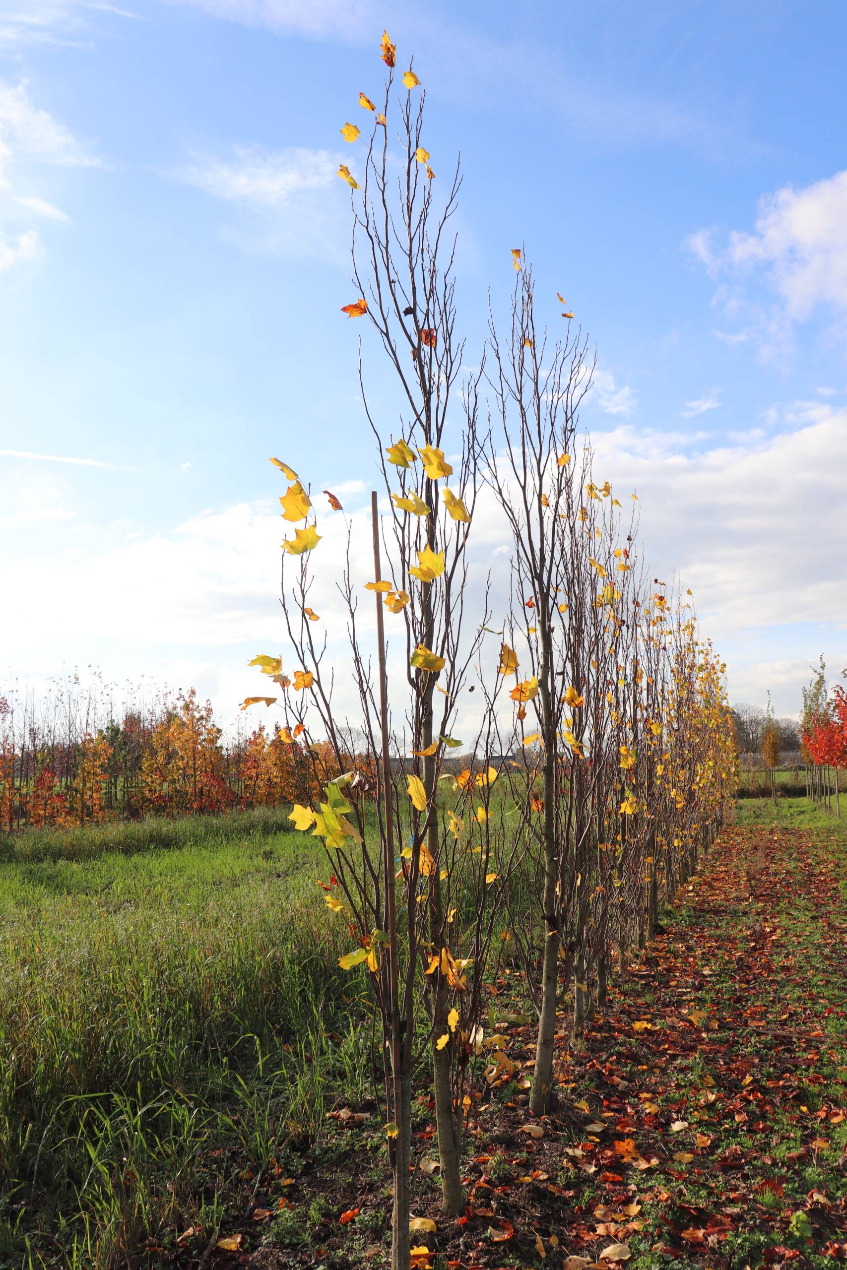 De boom heeft het kenmerkende tulpvormige blad, dat in het voorjaar frisgroen uitloopt en in de herfst verkleurt naar helder geel. In de vroege zomer kunnen geelgroene bloemen met oranje accenten verschijnen, vooral bij oudere exemplaren. De rechte stam en zuilvormige kroon geven de boom een strak en elegant uiterlijk.