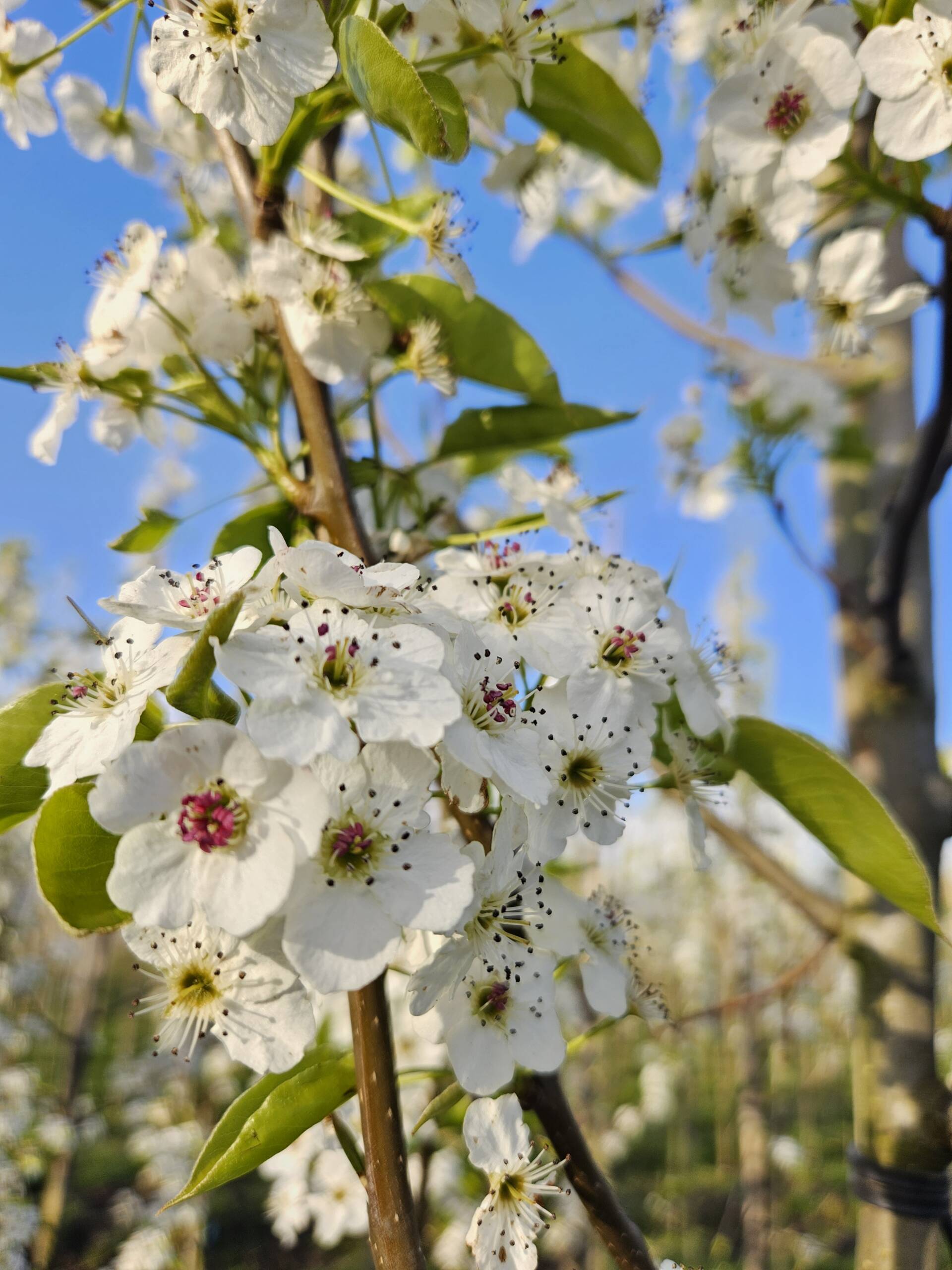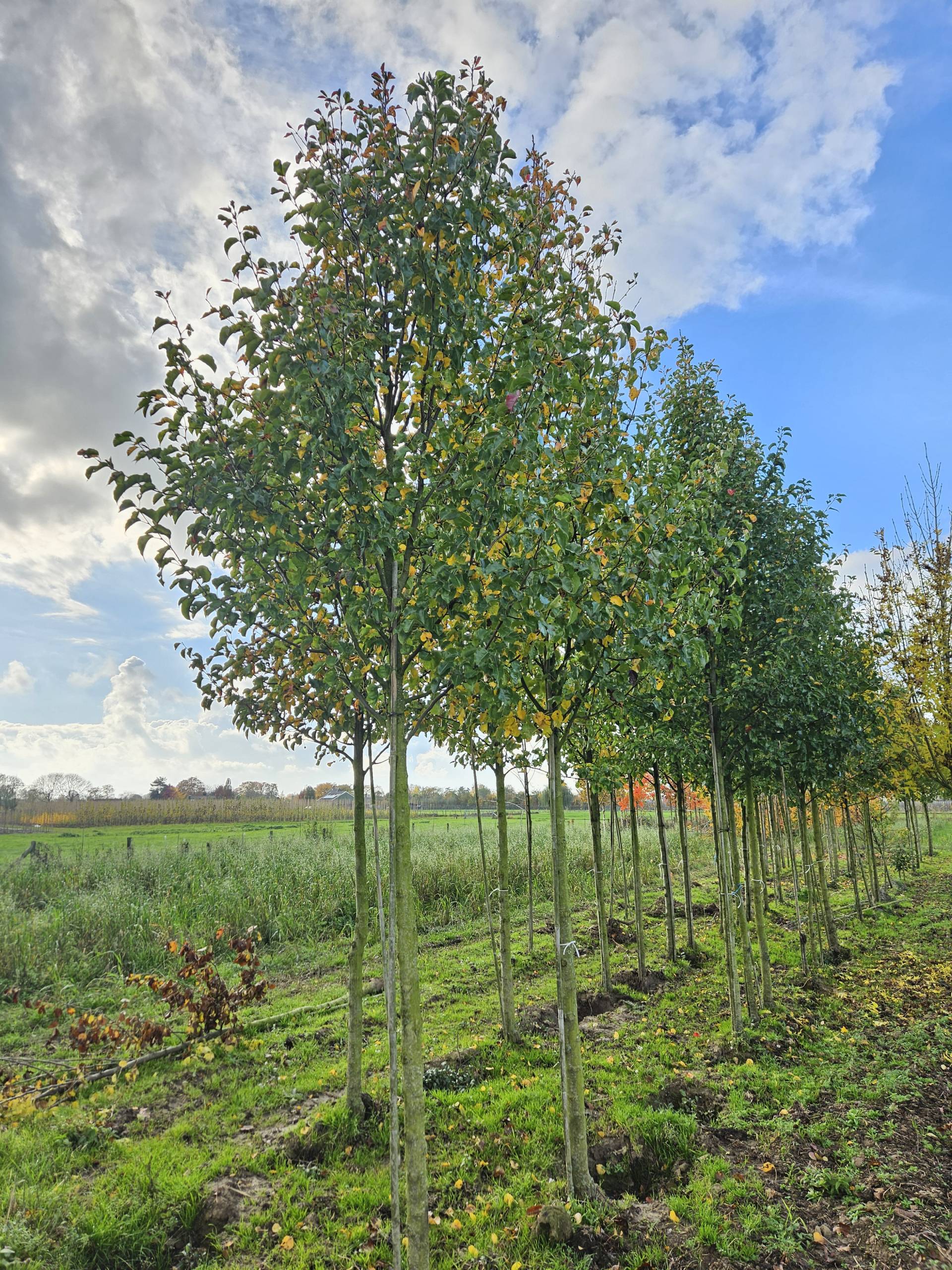 De Pyrus call. Chanticleer is een sierpeer met een slanke, zuilvormige groei en een strak, elegant profiel. In het voorjaar verschijnt een uitbundige bloei van geurige, witte bloemen die de boom een opvallend sierkarakter geven. Na de bloei volgt glanzend groen blad dat in de herfst schitterend oranje tot rood verkleurt, waardoor de sierwaarde het hele seizoen zichtbaar is.